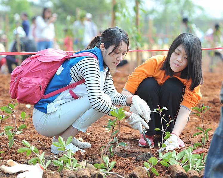 友達光電不斷落實環境永續的理念與承諾,今年是第十屆與明基友達基金會共同合辦「Green Party 綠色嘉年華」植樹活動。舉辦活動十年來,友達與集團企業已於全球廠區累計種植超過 100 萬棵樹,約莫一年可吸收 1.8 萬噸的二氧化碳排放量,相當於 2,500 座標準足球場面積的森林每年的吸碳量。友達今年仍持續以具體行動實踐對環境的綠色承諾,號召達運、隆達、友達晶材等集團公司近兩千名員工和眷屬擔任植樹志工,親手種下山櫻花、馬纓丹及長穗木等樹種,期望藉由別具意義的植樹活動,喚起社會正視節能減碳的重要性。